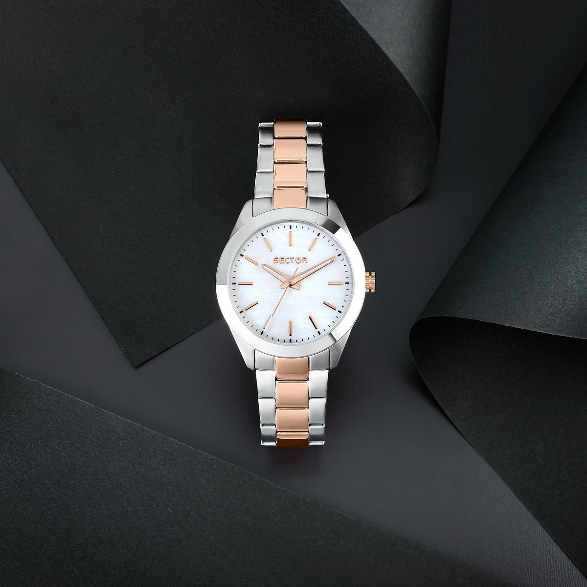 sector quartz ladies mother of pearl dial two tone bracelet watch