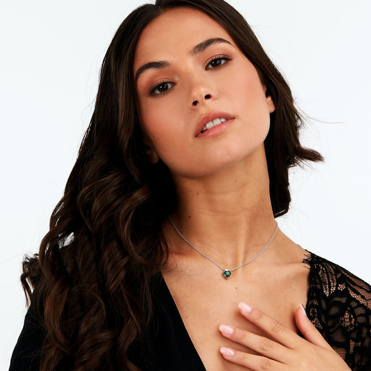 TESORI PENDANT 925 SILVER LARGE EMERALD HEART CZ 38+4CM