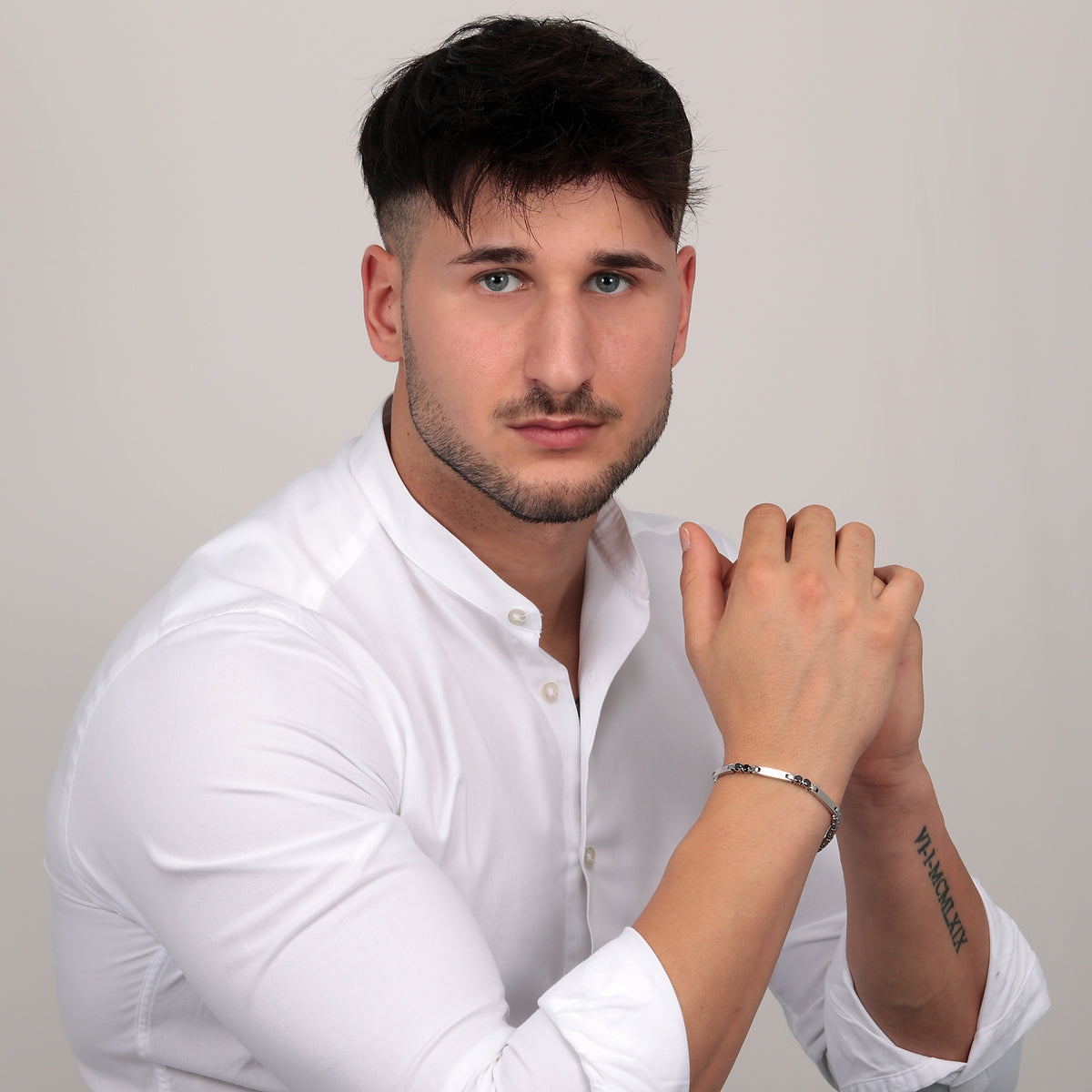 SECTOR TENNIS BRACELET STAINLESS STEEL TAG AND BLACK CZ 22CM