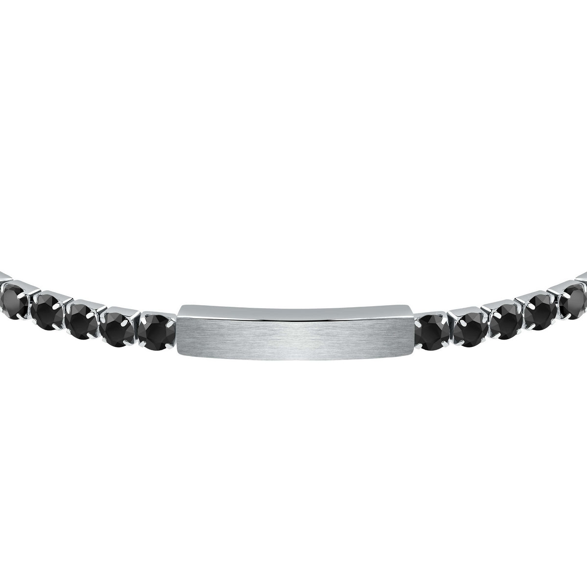 SECTOR TENNIS BRACELET WITH BLACK CZ AND STAINLESS STEEL TAG
