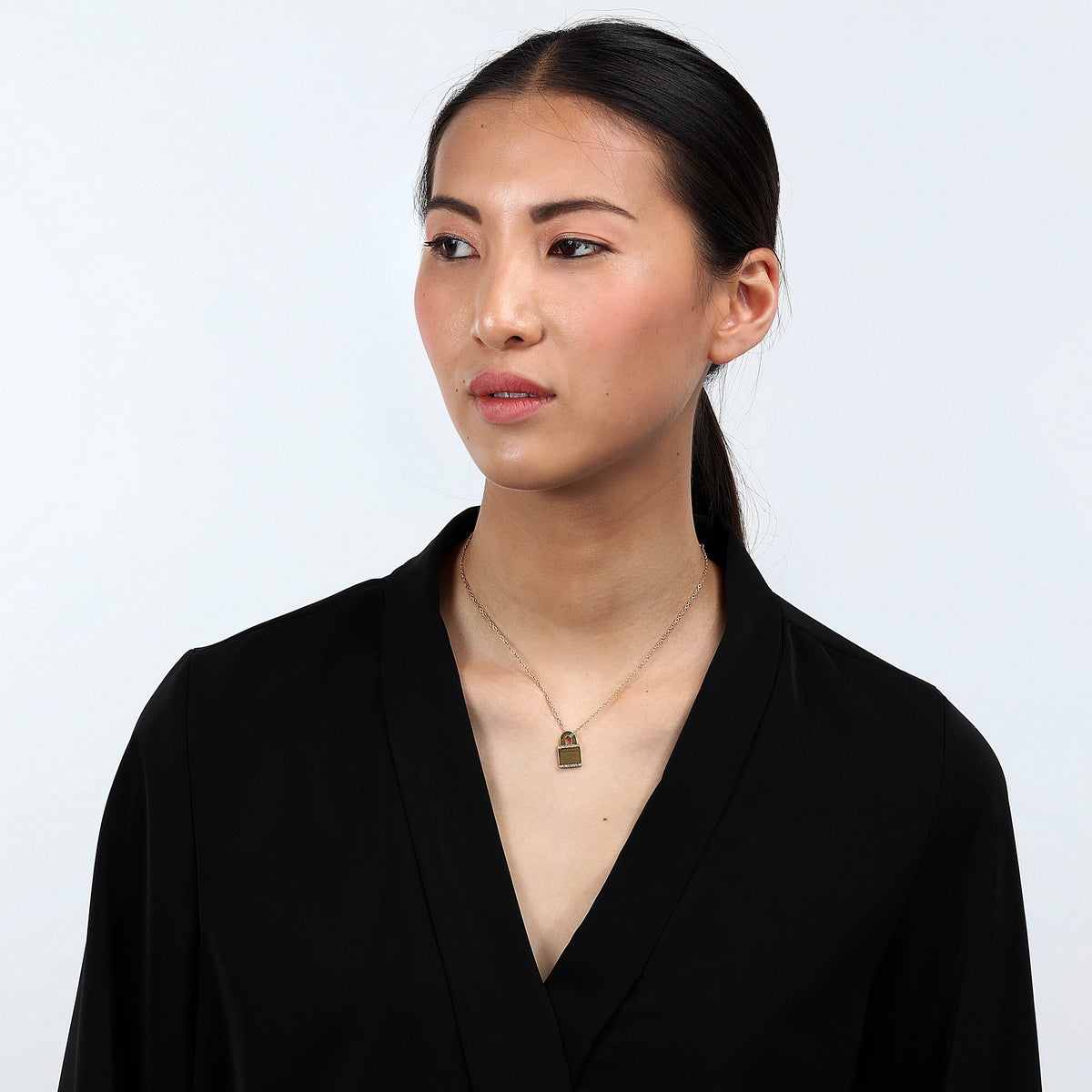 MORELLATO 18k GOLD PLATED MASCOTTE PENDANT LOCK WH CRYS 38+4CM