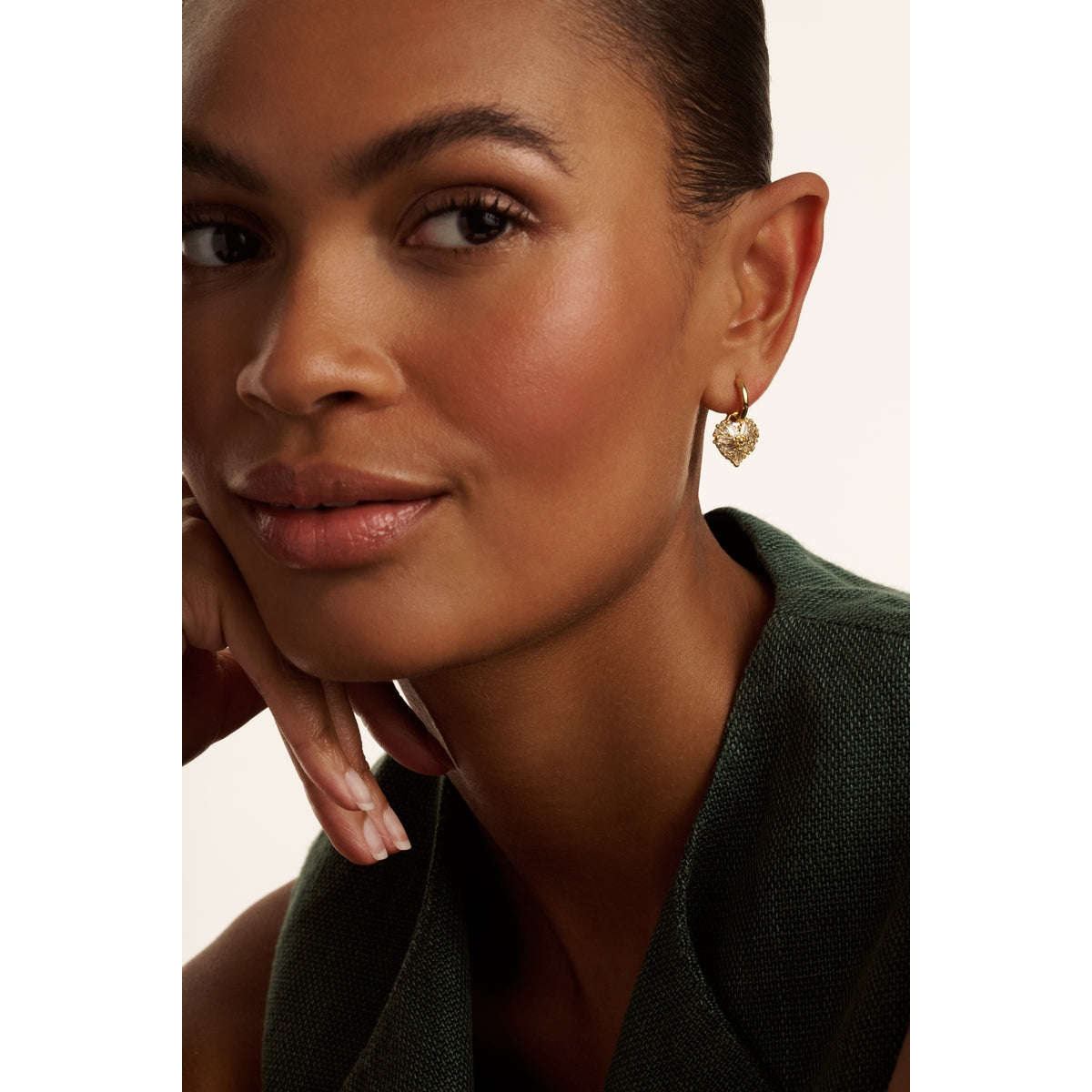 TED BAKER CHERISE: Crystal Cluster Heart Huggie Drop Earrings Gold Tone